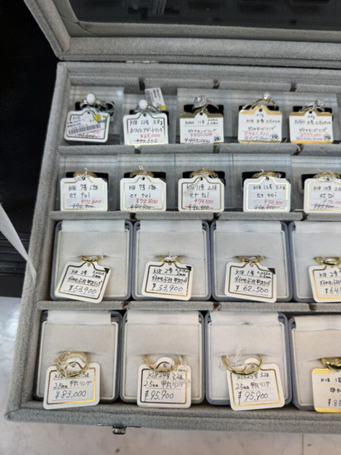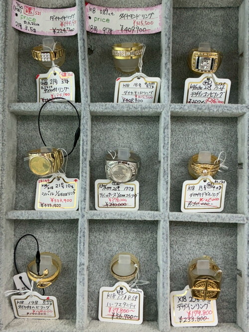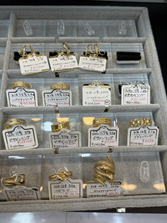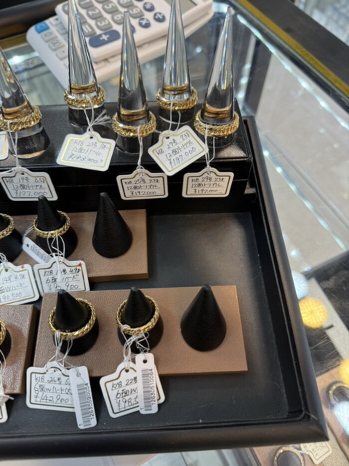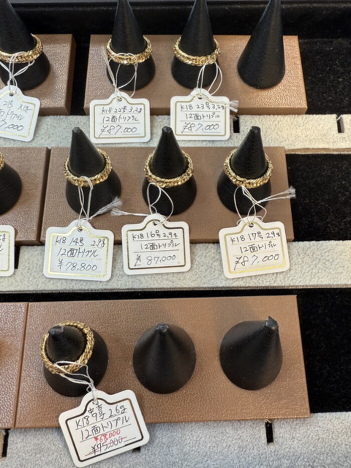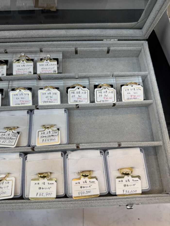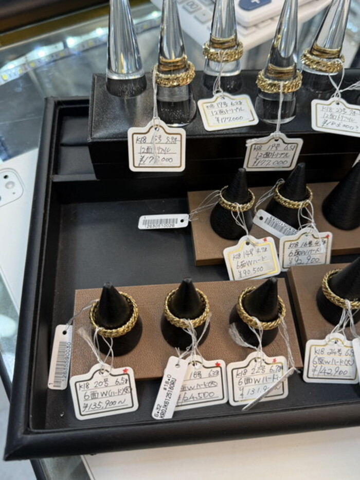 深く上質感のある輝きを放つK18ゴールド。大小さまざまなサイズのリングを取揃えております。